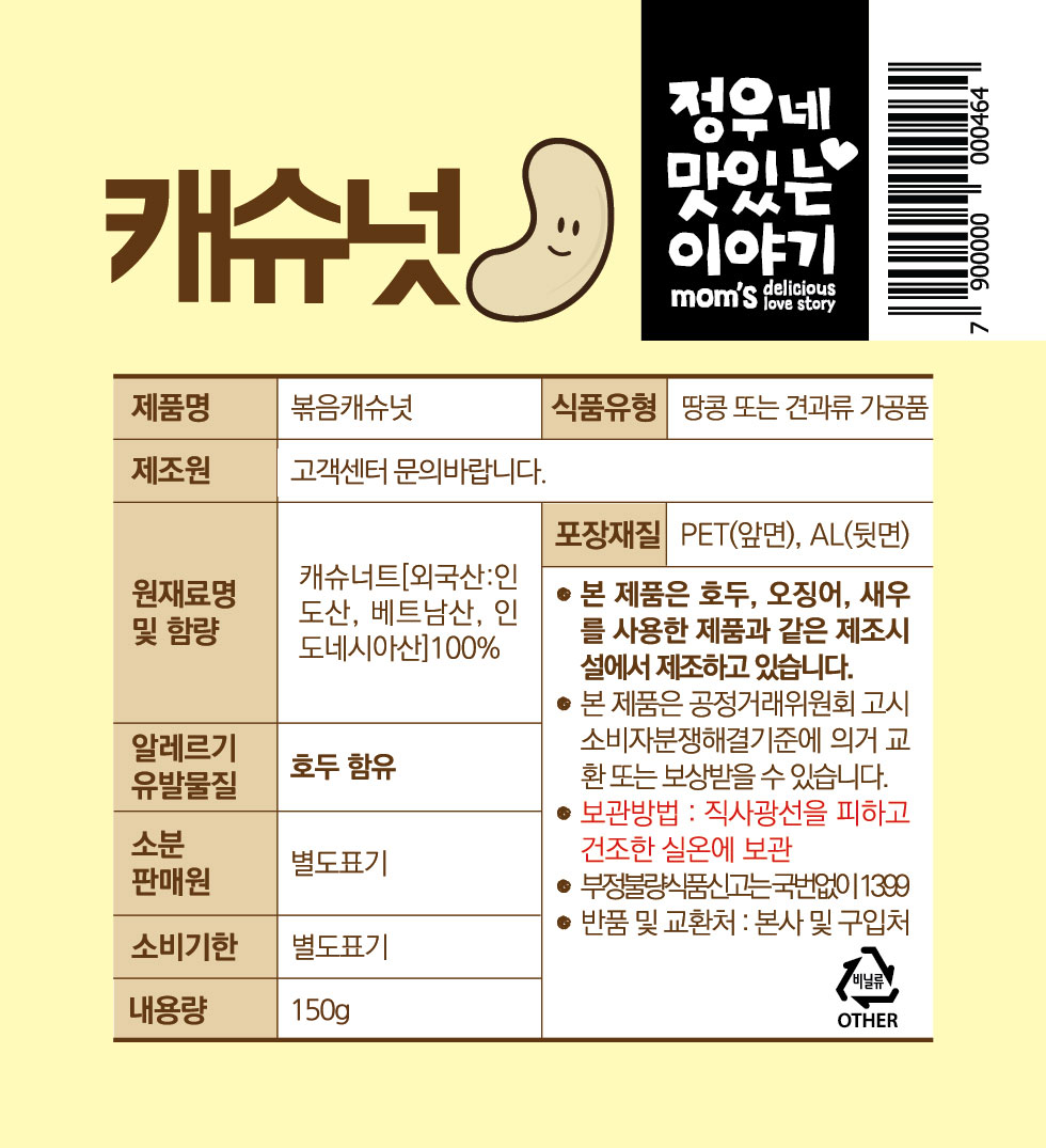 엄선된 신선한 캐슈넛으로 건강 챙기세요!